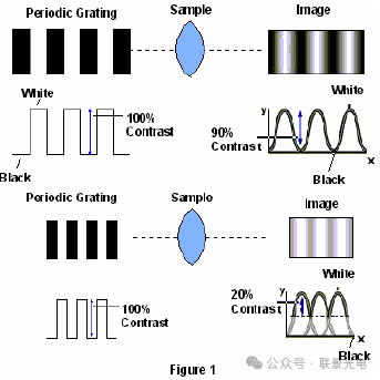在图像上,原来物体被强光照射的部分和很暗或存有阴影的部分,将不会如原物那样呈现特亮与特暗的明显亮度区别。样品差异或调制依据下式来定义: