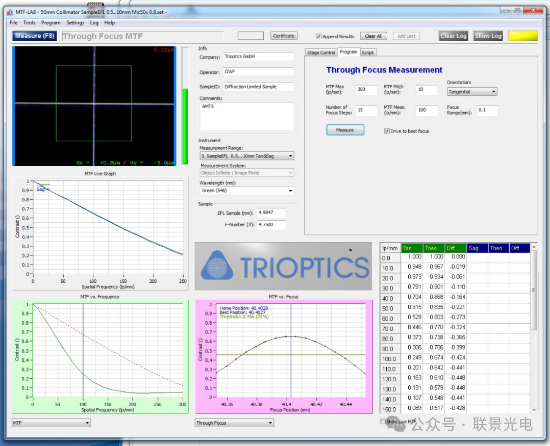 轴上光学传递函数MTF 有效焦距EFL