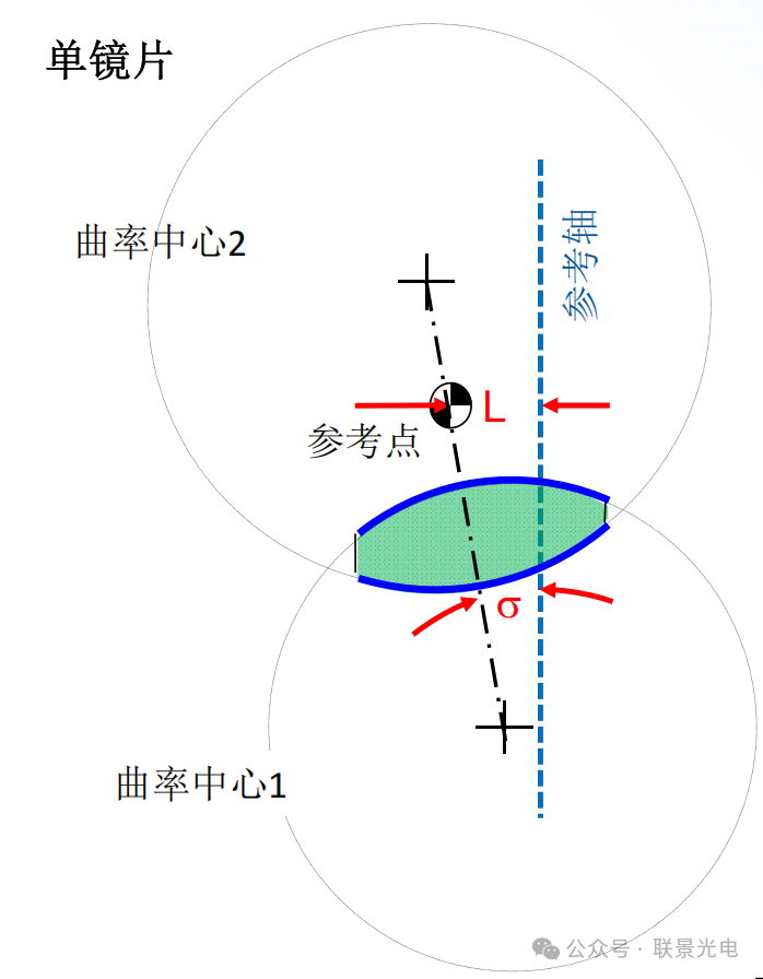 光学中心轴:由透镜两个曲面的球心所定义的直线(即下图黑色虚线)。对于理想透镜,这条线也是光轴,光线沿此轴传播不发生偏折。