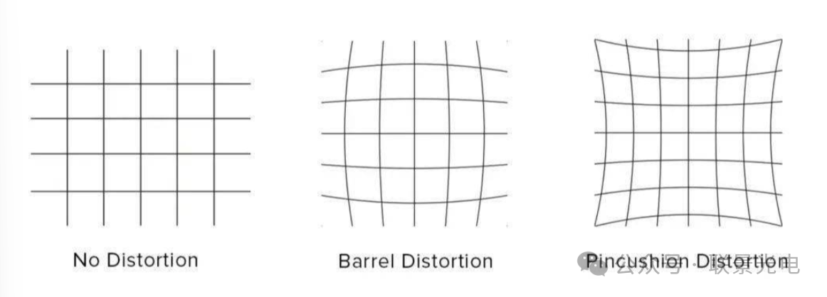 影响表现: 畸变不改变图像清晰度,但它会导致图像扭曲变形。它分为桶形畸变(负畸变,图像“膨胀”)和枕形畸变(正畸变,图像“收缩”)