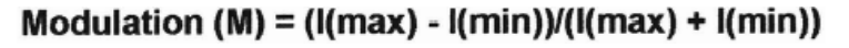 其中:I(max):表示重复结构显示的最大光强;I(min):表示在同一物体上发现的最小光强。
