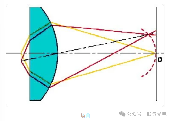 场曲,即像场弯曲,是指当物体通过光学系统成像时,物体所成的像和理想像面并不重合,发生偏离的现象。
