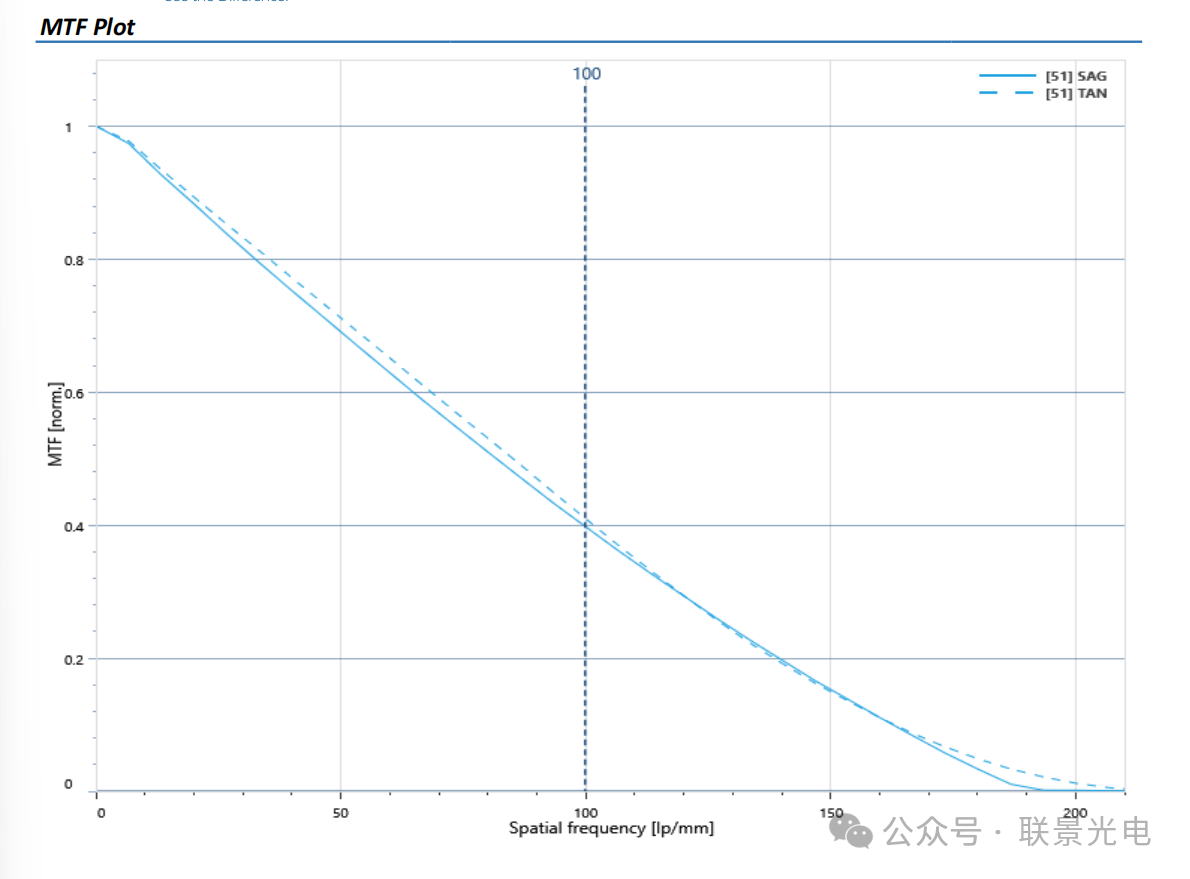 中心视场(0°):通常是成像质量最好的区域,MTF 曲线最高。